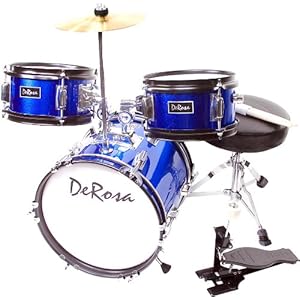 De Rosa Children's Drum Set is the quintessential drum kit for any young aspiring drummer. This set comes with everything your drummer will need to start playing. Built using real drum specifications the De Rosa Children's drum set is made using Birch and features authentic metal hardware. The materials used the De Rosa Children's Drum Set are equivalent to materials used in higher priced adult Drum Sets. All sets require some assembly. ... Read More...